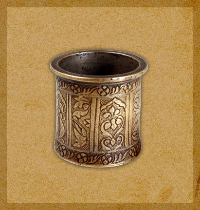 The heavy cast and engraved vessel is used for keeping water or milk for performing rituals. Height 7.8 cm., Diameter 7.8 cm., Weight 0.49 Kg.